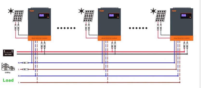 Sok rendszerben 2–3 invertert használnak ahhoz, hogy nagyon masszív 230/400 V-os háromfázisú rendszert hozzanak létre – ezt egyetlen inverterrel vagy nagyon nehéz, vagy csak drága speciális háromfázisú modellel lehet megoldani.