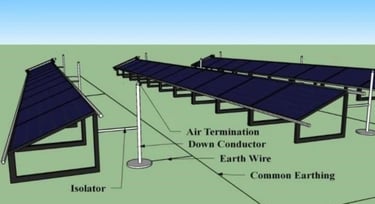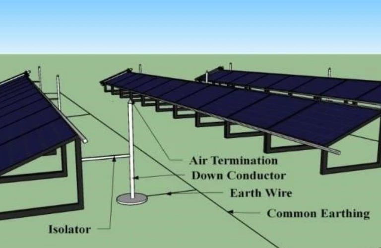 Villámhárítók / légterelők — Magasabb kockázatú területeken szerelj fel villámhárítókat a napelemek magassága fölé, hogy elkapják a villámcsapásokat.